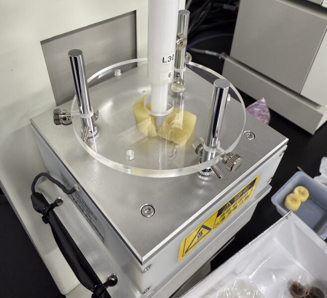 「食品物性学」は、食品の物理的特性、特にテクスチャーやレオロジーを研究する研究分野です。食品の物性は、食感や口当たりなどヒトが食品のおいしさを評価する際の重要な要素となります。また、物性という客観的評価だけでなく、嗜好性などの主観的評価を通して官能評価実験についても検討しています。このように、「食品物性学」では、人間環境の改善に資する加工食品の開発を目指し、食品の物性と嗜好性を系統的に研究しています。