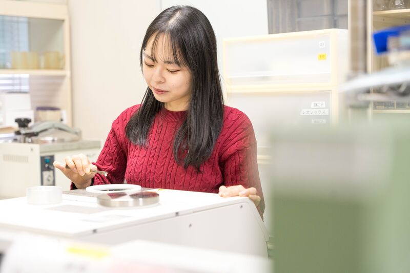 学会での発表は緊張しましたが、これまで時間をかけて集めてきたデータをもとに発表し、その成果を評価していただけたことは大きな自信になりました。特に、学外の先生方と意見交換をすることで、自分の研究をより広い視点で考えられるのが、学会発表の良いところだと思います。今回の経験を通して、改めて研究は楽しいと感じることができ、これからも頑張りたいと思います。